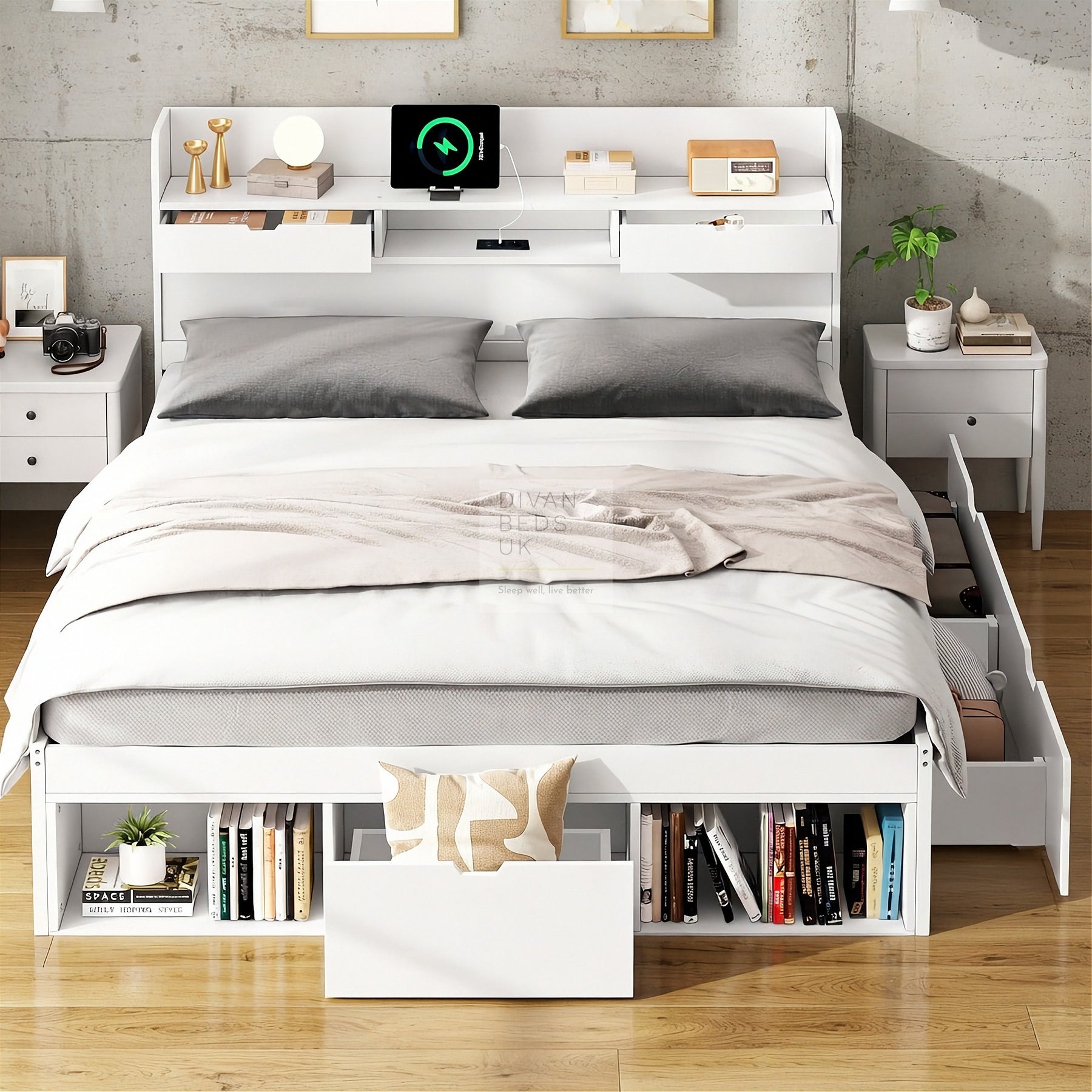 - Charging Headboard Includes: 2 x AC Power Sockets & 2 x USB Ports