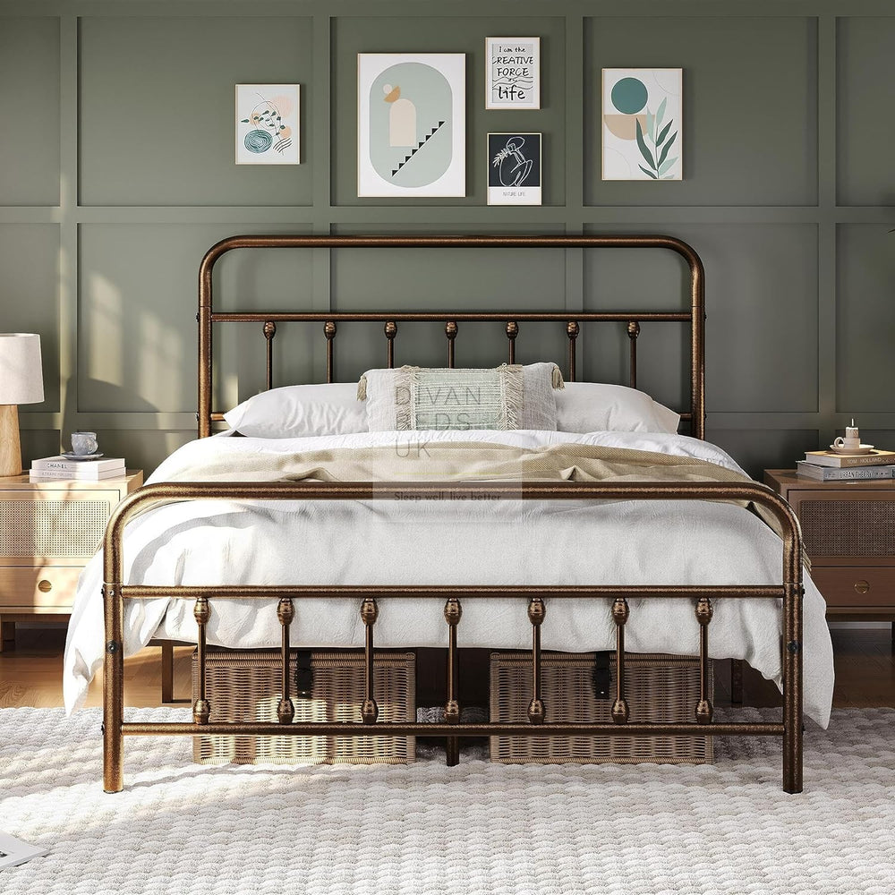 Check out our collection of metal bed frames with a distinctive antique bronze finish for a touch of industrial and retro style. We also offer a variety of other finishes such as brass, black, white, and grey to suit your preferences.