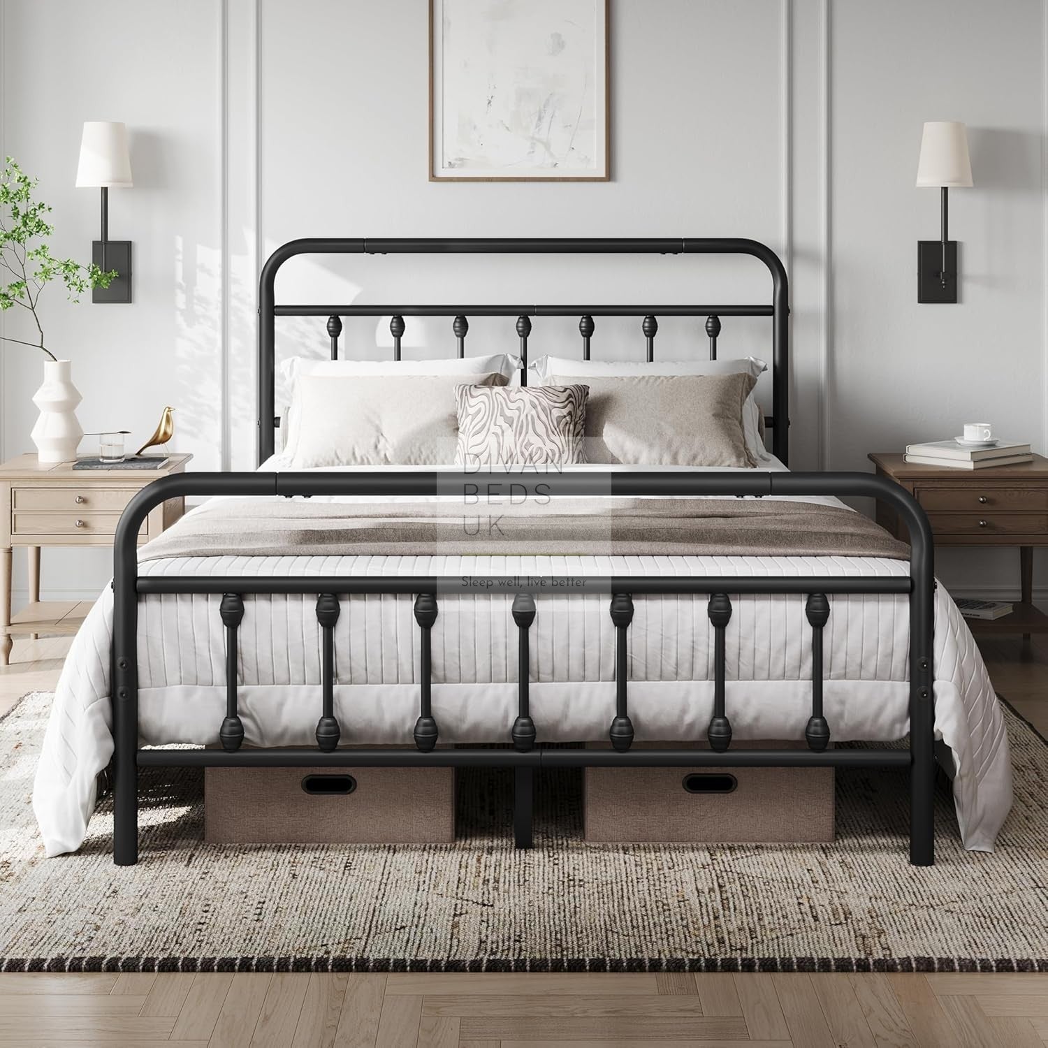 - Bed in Image is: Black Metal Finish